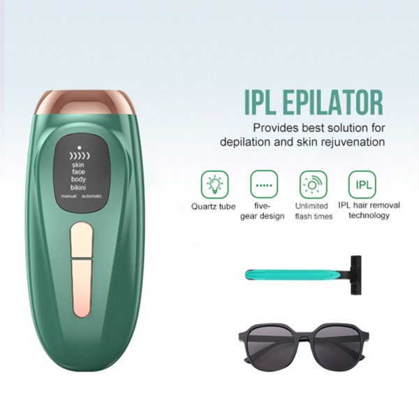 IPL laser pulsed light technology, plug-in use. 5 speed adjustment, power 24W. Wavelength 400-1200nm.Break up and automatic connect function, energy frequency 3-7