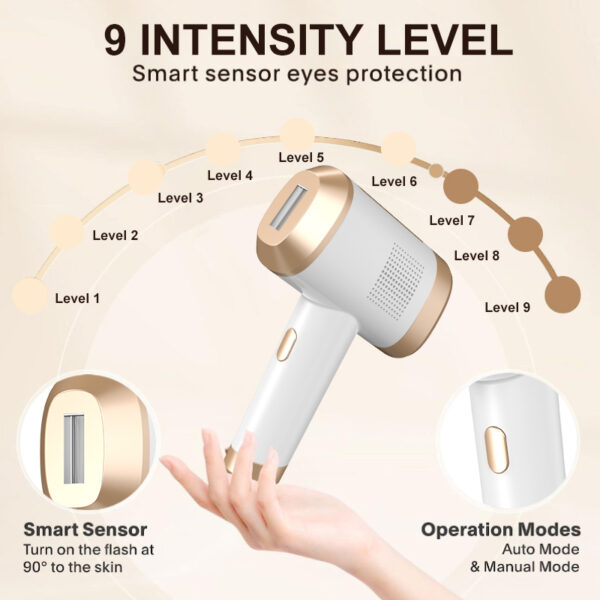 UPGRADED 9 ENERGY LEVELS: Choose from 9 different intensity levels to best suit your skin tone and hair colour. The higher the energy level, the more effective your hair removal will be. For first time users, it is recommended to start with the lowest 1 level and get used to it.
