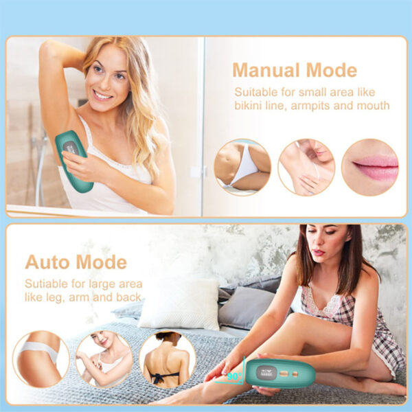 Modes for All Areas: This hair remover device offers modes to target different areas of the body. Use the continuous mode for larger areas like legs and back, while manual mode suits more sensitive areas such as the bikini line, face, and underarms. Enjoy a tailored hair removal experience on every part of your body.