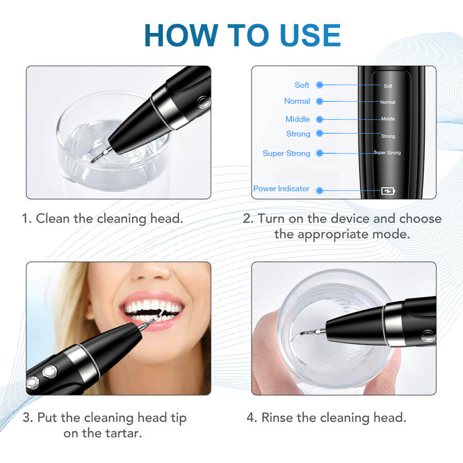 1. High-frequency ultrasonic cleaning power can easily remove tartar, smoke stains, tea stains, etc. on teeth.